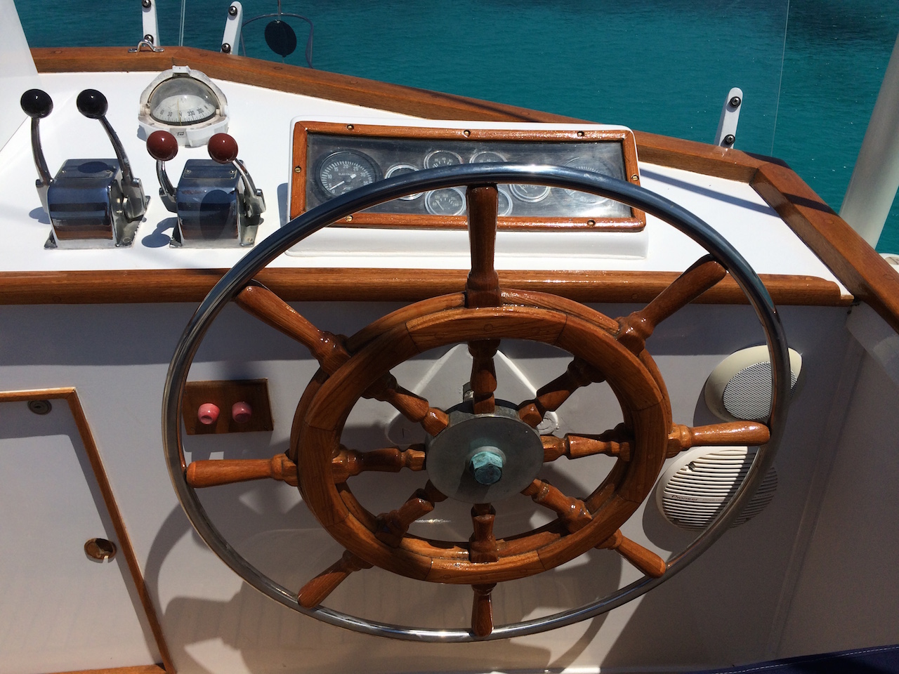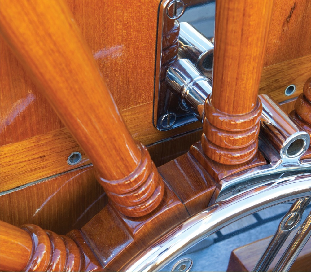 Vous pouvez également lire le témoignage d’un propriétaire de Grand Banks 48 MY de 1974, lassé de devoir reprendre ses vernis traditionnels tous les ans. Il a donc appliqué le vernis Coélan sur le tableau arrière, les rambardes, les listons, les baguettes, les parements en teck et les boules des commandes moteur.