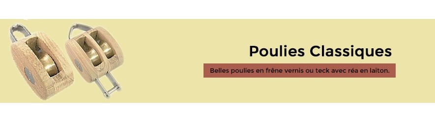Simple block in teack or varnished ash available for rope from 10 to 14 mm. The sheave is on brass and the binding in...