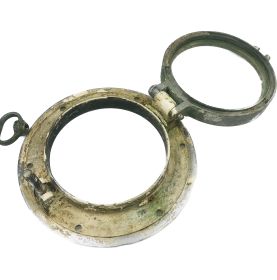 Brass rowlock with natural patina. Rowlock with an inner diameter of 45mm, a shaft length of 75mm, and a shaft diameter of...